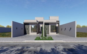 Casa Na Planta/ Entrega Março de 2025 suite e dois quartos banheiro social pé direito alto sala de jantar e estar com cozinha integrada espaço gourmet com churrasqueira sobra de terreno nos fundos 35 m²